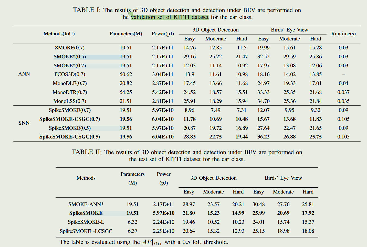 基线模型较老: 论文基于的 SMOKE 架构虽然经典,但在单目 3D 检测领域已不算最前沿(例如目前许多基于 Transformer 或 BEV 视角的模型表现更好),在更先进架构上 SNN 能否保持这种优势尚待验证。