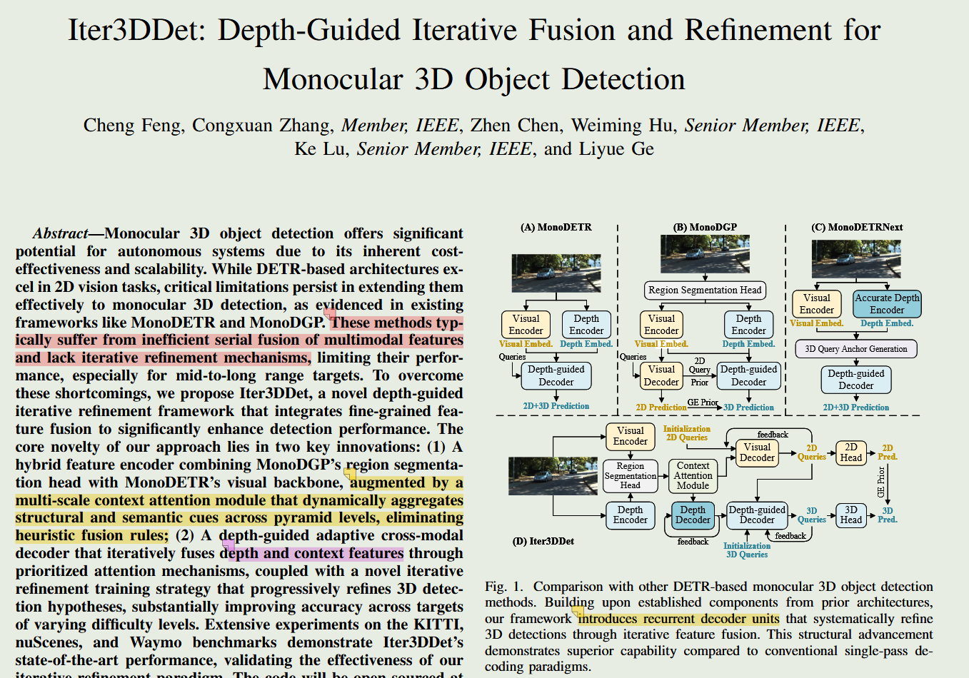 | 论文地址 | Iter3DDet: Depth-Guided Iterative Fusion and Refinement for Monocular 3D Object Detection |